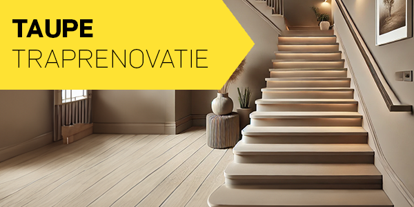 Door de subtiele tint creëert taupe een rustige en harmonieuze sfeer, terwijl het minder gevoelig is voor zichtbare slijtage en vuil dan lichtere kleuren. Hierdoor is taupe een populaire keuze voor een traprenovatie.