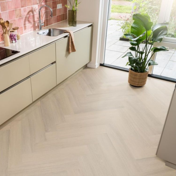 De Ambiant Spigato Viranto Visgraat Warm Beige is een PVC-vloer met een klassiek visgraat patroon die zorgt voor een serene en uitnodigende sfeer. Deze dryback vloer heeft een warme beige kleur met een natuurgetrouwe houtstructuur. Het vastlijmen van deze vloer zorgt voor een zeer stabiele ligging en optimale contactgeluidsreductie. De vloer is volledig waterbestendig en hierdoor te gebruiken in alle kamers, inclusief vochtige ruimtes zoals de keuken en badkamer. Daarnaast is deze vloer uitermate geschikt voor vloerverwarming en krijgt je er een levenslange garantie op. Wil je een vloer die rust en elegantie uitstraalt en tegelijkertijd super praktisch is? Dan is dit de perfecte match voor jou. Maak direct een afspraak bij een dealer bij jou in de buurt om de Ambiant Spigato Viranto Visgraat Warm Beige in het echt te bekijken!