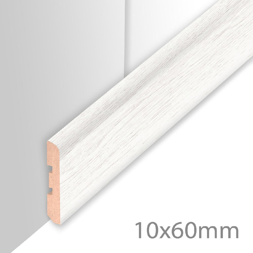 MDF plint 10 x 60 mm voor de afwerking van wanden. Lengte 260cm. Passend bij HDM wandpanelen en plafondpanelen.