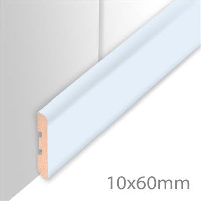 MDF plint 10 x 60 mm in het decor voor de afwerking van wanden. Lengte 260cm. Passend bij HDM wandpanelen en HDM plafondpanelen.