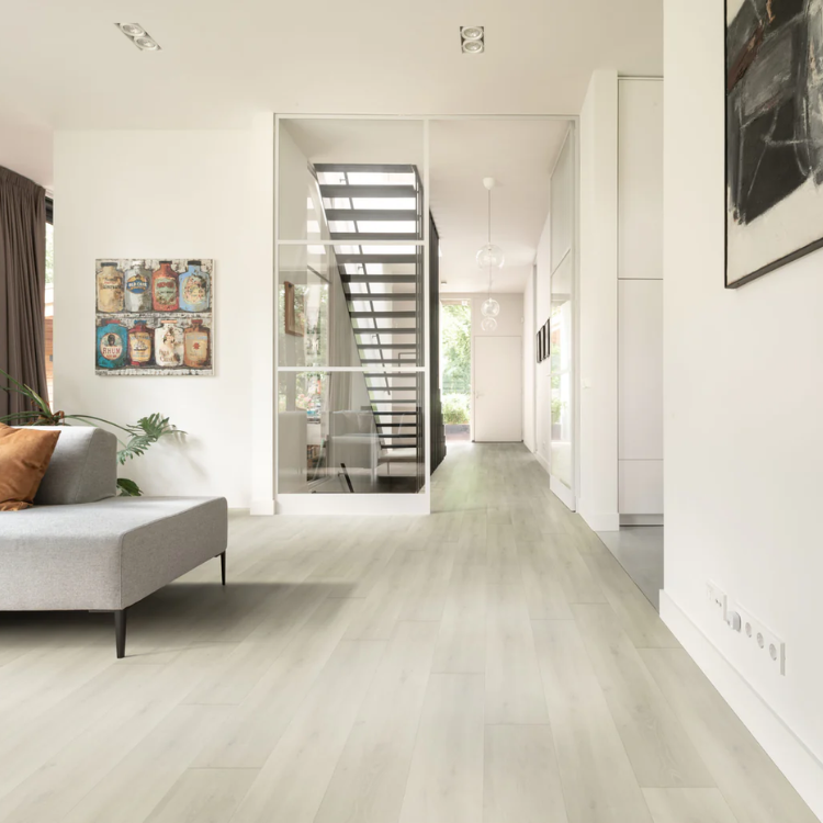 De Hebeta Chamonix XL Plank - Eiken wit - 25 cm x 153 cm is de perfecte keuze om je interieur een frisse, lichte en moderne touch te geven. Deze prachtige witte eiken PVC vloer, met zijn royale XL planken, laat elke ruimte groter en lichter aanvoelen. Het is de ideale basis voor een Scandinavische look of een minimalistische stijl, en dankzij de waterbestendigheid is hij overal in huis inzetbaar. De vloer is bovendien heerlijk geluidswerend en compatibel met vloerverwarming. Laat je inspireren door de oneindige mogelijkheden die deze Hebeta vloer je biedt.