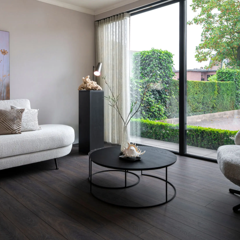 De Organic Rigid Core – Eiken donker gerookt vloer combineert een robuuste, natuurlijke uitstraling met een duurzame kwaliteit die ideaal is voor elke woonruimte. De textuur en register embossing techniek geven een authentieke houtbeleving die nauwelijks van echt hout te onderscheiden is.